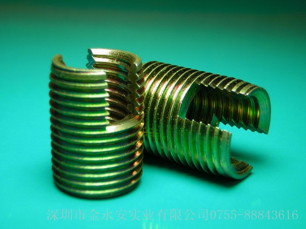 自攻螺套介绍:自攻螺套是一种多功能的紧固件产品,其主要的特点主要体现在低强度材料螺丝孔内螺纹的增强与内螺纹损坏时进行螺纹修复等方面。自攻螺套的应用很广泛,自攻螺套现已广泛运用于汽车工业、轨道车工业、船舶工业、家电用品、建筑机械、事务机器、电子产品、工程塑料、高级组合家具等行业。