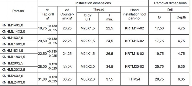 当前位置:首页 >> Keensert >> Keensert插销螺套KNHM系列Keensert插销螺套规格 Keensert插销螺套KNHM系列规格